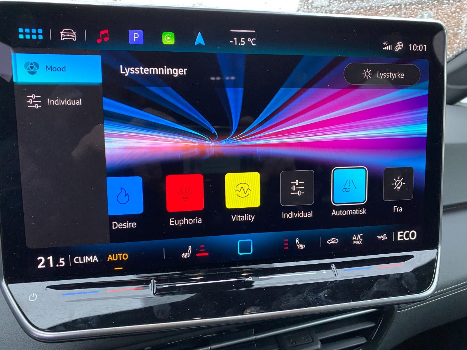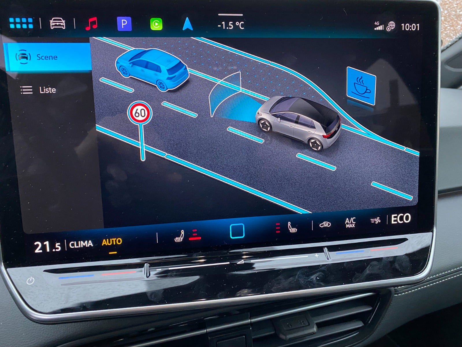 matrix led forlygter, varmepumpe, helårsdæk, varme i rat, 5 års garanti, 2 zone klima, adaptiv fartpilot, aut. nedbl. bakspejl, sædevarme, udv. temp. måler, elektrisk kabinevarmer, dynamisk blinklys i bag, led baglygter, adaptive forlygter, kurvelys, fuld led forlygter, el-klapbare sidespejle m/varme, helårshjul, ambiente belysning, splitbagsæde, højdejust. forsæder, stofindtræk, læderrat, multifunktionsrat, kørecomputer, digitalt cockpit, nøglefri adgang, nøglefri tænding, 4x el-ruder, elektrisk parkeringsbremse, trådløs mobilopladning, manuel forvarmning af batteri, automatisk forvarmning af batteri, app integration, dab radio, dab+ radio, navigation, håndfrit til mobil, apple carplay, android auto, musikstreaming via bluetooth, automatisk parkeringssystem, parkeringssensor (for), bakkamera, parkeringssensor (bag), skiltegenkendelse, træthedsregistrering, intelligent hastighedsassistent, automatisk lys, isofix, fjernlysassistent, 7 airbags, stemmebetjening, auto hold, automatisk nødbremsesystem, vognbaneassistent, antispin, esp, automatisk nødassistent